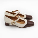 Genuine leather Mary Jane pumps with a T-strap design.